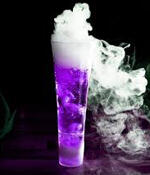 Twisted Fate - 50,000gA drink that pours clear until kissed by a drop of a mysterious alchemic concoction where the deep violet hues flourish through. A slight trail of smoke bespeaks something unknown...dare to test your fate?