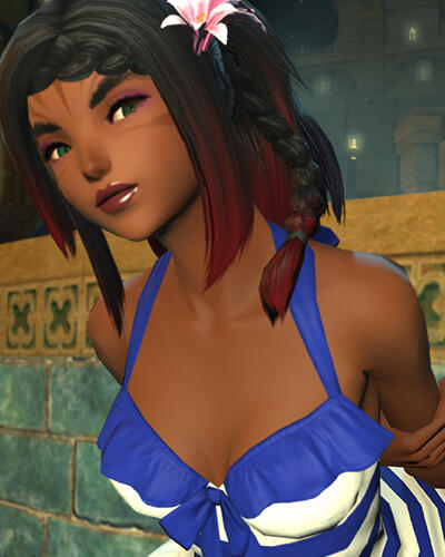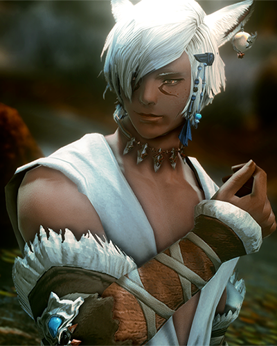 A coquettish performer with a past that changes every Wednesday and a promiscuous streak as long as the Gates of Judgement, T'kumi spends most of his time dancing, drinking and singing. He flourishes under the eyes of others, and isn't shy about his desires in either his his words or his dances. Not one to want gentleness and preferring to take something rough and hard, the promise of debauchery will always catch his ear-- though he would rather you just give it an outright pull in bed.