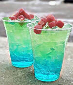 Sirensong - 5,000gEcho the sea with this cerulean blend of apple schnapps, mixed berry schnapps, vodka, blueberry lemonade with a splash of lemon concentrate; garnished with rolanberries